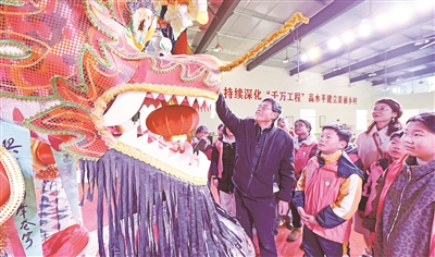 1月12日,仙居县横溪镇中心小学学生来到曹店村文化礼堂,观摩当地民间艺人制作板凳龙灯。当日,仙居县横溪镇中心小学开展寒假“研学非遗迎新年”活动,通过学习非遗文化,感受传统非遗魅力。