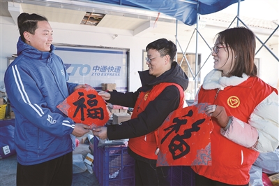 1月13日,湖州市吴兴区埭溪镇总工会开展送春联、送健康、送法律援助等活动,为一线职工特别是新就业形态劳动者送上一份温暖。通讯员何伟卫 摄