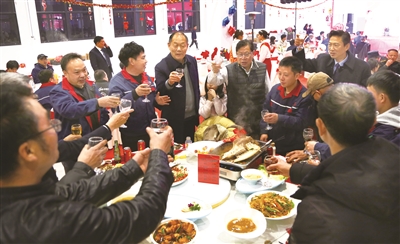 1月12日晚上,位于玉环市干江滨港工业城的东铁集团大铁交通装备有限公司举办了辞旧迎新团拜会,150多名员工齐聚一堂,同吃年夜饭,公司还准备了电瓶车、全自动洗衣机、养生炉、棉被四件套等礼物,通过抽奖的形式赠送给员工。近年来,随着创业环境的不断优化,新玉环人的就业、发展、居住环境也不断改善,越来越多的新玉环人在玉环兴业安家。通讯员吴达夫 摄