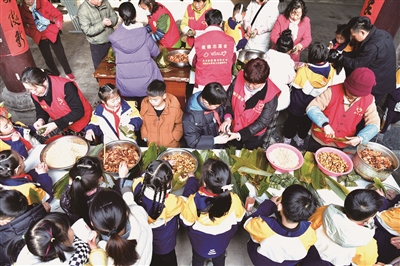 昨日,建德市乐享家社会工作服务中心在寿昌镇洪家厅举办“情暖留守娃 牵手共成长”主题的品年味迎新春活动,志愿者指导留守儿童们一起包粽子,让孩子们在欢乐中感受年味和关爱。