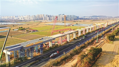 2025年是项目建设高潮年,全体参建人员将继续以立功竞赛活动和平安百年品质工程创建为契机,全力打造高速公路改扩建项目样板工程。图为建设中的甬台温改扩建宁波南段鄞奉高架桥。
