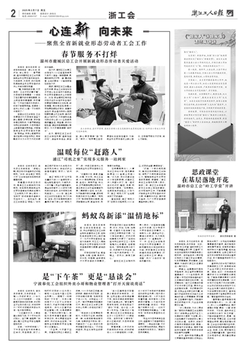 “打造一个服务司机朋友、解决实际问题的工会阵地,凝聚广大司机群体的向心力,增强新就业形态劳动者的获得感、幸福感。”浦江县总工会相关负责人表示,新的一年,浦江工会将继续做好工会爱心驿站的建设、运行和维护工作,不断提高对新就业形态劳动者的关怀力度,丰富服务内容、提升服务品质,为广大劳动者提供高品质暖心服务。