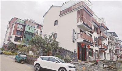 | 湖上村林立的民宿。 记者羊荣江 摄 |