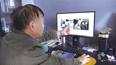 | 沈浩鸣在展示近年来搜集的资料。居秋渊 摄 |
