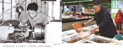 (上)技术操作比赛,车工吴晓中——(下)现在自谋职业,菜场水产摊摊主。