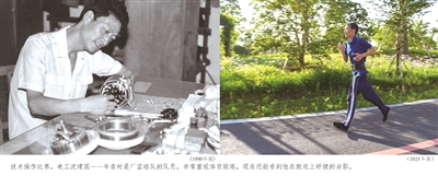 (上)技术操作比赛,电工沈建国——(下)年轻时是厂篮球队队员,非常重视体育锻炼,现在还能看到他在跑道上矫健的身影。