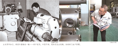 (上)主关零件加工,精密外圆磨床工俞一敏——(下)退休后企业返聘,协助部门生产管理。