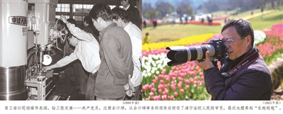 (左)青工培训现场操作表演,钻工张定康——(右)从会计师事务所退休后担任了海宁法院人民陪审员,最近也摆弄起“长枪短炮”。