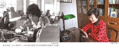 (上)技术考核,车工周菁华——(下)和在国外的两个孙子视频聊天是她现在最开心的事。