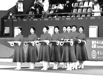 在本届亚冬会颁奖典礼上,礼仪小姐们穿着的红色颁奖礼服引起大家的高度关注。