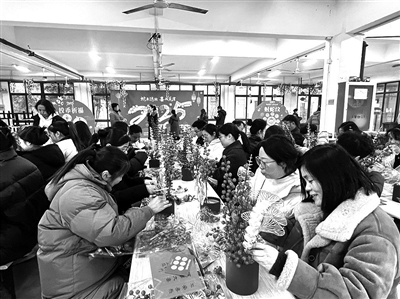 活动现场设置七大传统特色项目,将非遗技艺与现代创意有机融合。职工们在非遗拓印区亲手制作灵蛇盘福年画,年宵花艺区的红柳枝与灯笼挂饰碰撞出“花好月圆”的祝福,“钱”来运转游戏区清脆的铜币声传递着新春期许。此外还进行了击鼓传花、灯谜竞猜和共享暖心汤圆,职工们在欢声笑语和甜蜜中感受传统文化魅力。