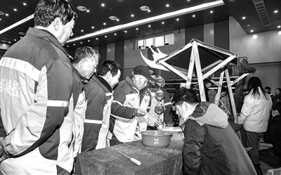 图为职工们正参与夹元宵活动。