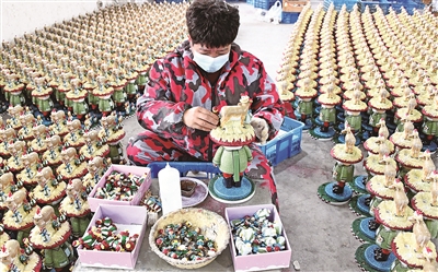 昨日,仙居县上张乡扬帆工艺礼品厂共富工坊车间,工人忙着赶制出口的工艺品订单。近年来,仙居县坚持党建引领,创办企业“共富工坊”,通过工会、共青团、妇联等部门牵线引资搭台和开展定向就业技能培训,促进农民在家门口就业增收。