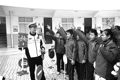 近日,台州市公安局交通警察局直属一大队民警来到台州市椒江区海门小学,通过组织学生体验车辆盲区、玩交通安全飞行棋游戏、展示交通安全标志等多种形式,向学生们详细讲解了交通信号灯、斑马线、交通标志等交通安全知识以及闯红灯过马路、逆行骑自行车等交通违法行为的危害性,使学生们懂得了遵守交通安全法律法规的重要性,提高了“知危险、会避险”的防范能力。通讯员何文斌、罗华鹏 摄
