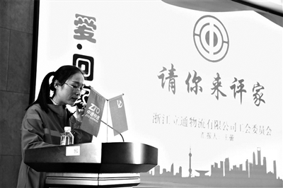 | “评家活动”上,王蕾作年度工会工作报告,并倾听职工意见建议。 |