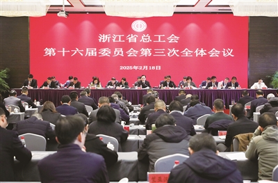 | 浙江省总工会第十六届委员会第三次全体会议在杭州召开。 见习记者任杰 摄 |