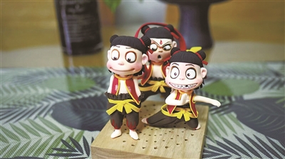 | 陆晓艳用黏土制作的哪吒摆件。 王博、付博勋 摄 |