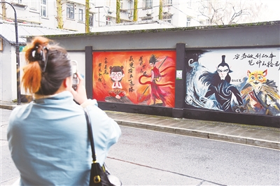 昨日,在杭州市上城区孝子坊巷口,《哪吒2》主题墙绘惊艳亮相。经过画师们的精心创作,哪吒、敖丙、申公豹、申小豹等形象已陆续完工,惟妙惟肖、细节满满。也吸引了不少市民前来驻足观赏、拍照打卡《哪吒2》主题墙绘。