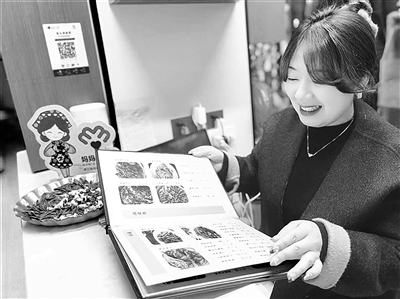 | 徐萍翻看菜单,挑选新一年爱心餐菜品。 |