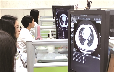 2月25日,在绍兴市中心医院放射科,AI影像分析系统辅助医生进行快速精准诊断。据悉,该系统能够捕捉到微小病灶并自动定位,在结合专业医生诊断确认后给出影像检查结果,提升准确性与效率的同时,也有效改善患者就医体验。