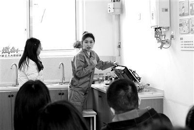 | 浙江工匠殷一珍(右)进行燃气灶安全检查演示。 |