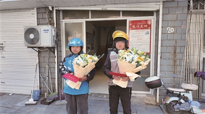 本报讯 记者李凡 通讯员郑轶文报道 近日,一条两名外卖骑手在送餐途中勇救落水青年的暖心视频引发了广大网友的关注和热议,大家纷纷为他们的义举点赞。3月17日下午,宁波市海曙区总工会慰问组一行来到鄞江镇看望慰问两位热心助人的外卖骑手许聪聪和鲁成洲,对他们奋不顾身、勇于救人的行为给予充分肯定,并详细了解他们的健康状况、工作及生活情况,向他们送上慰问金、鲜花和牛奶水果等。