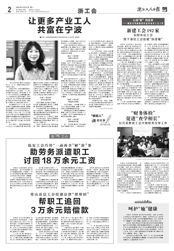 本报讯 见习记者贾馨然 通讯员谢梦珍、周华国报道 “没想到工会窗口工作人员这么热心地帮我维权,为我提供法律帮助,还帮我追讨回来3万余元的赔偿款。”近日,谈及常山县社会治理中心工会服务窗口的律师服务,职工周小春表示十分满意。
