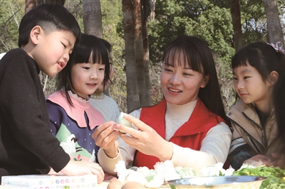 近日,台州市路桥区路北街道铭泰社区的党员志愿者在和小朋友一起做花草蛋。为解决职工家庭没时间带娃的难题,铭泰社区组织社工和党员志愿者在文化礼堂,为孩子们开展免费的围棋、绘画等兴趣小课,用基层普惠托育服务缓解职工工作家庭难平衡的压力。