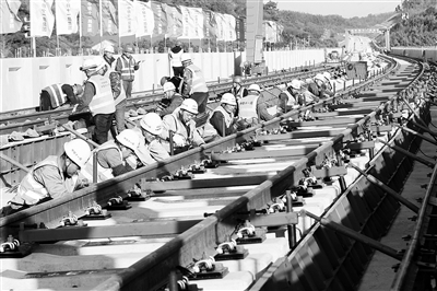 日前,位于湖州市德清县下渚湖街道的杭德市域铁路铺轨施工现场,随着首节轨排平稳地铺设到道床上,杭德市域铁路高架段开始进入铺轨阶段。作为浙江省重点项目,连接杭州市余杭区和湖州市德清县的杭德市域铁路工程全长约25.6公里,全线设9座车站,预计2026年开通运营。