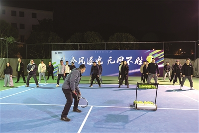 活动中,专业教练介绍了网球运动基本知识和规则,并开展基础动作的教学,从正确握拍到标准发球,手把手指导,耐心纠正每个动作。在大家掌握基本要领后,教练组织开展了简单的练习和互动游戏,职工们分成小组,相互配合,在轻松愉快的氛围中逐步熟悉网球运动。 韩思吟 文/摄