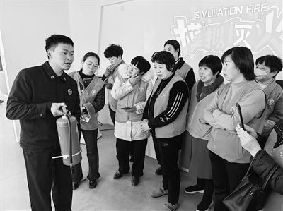 “电瓶车充电知识要学习一下,电瓶车不能放在楼梯间,过道上也不能放。”身着粉色马甲的“美丽大姐”们结伴而行,共同普及消防宣传知识。“提拔握压,这是灭火器使用口诀。平时多看看灭火器指针的区域,红色代表压力不足,黄色代表压力过高,绿色代表正常,就像过马路的红绿灯一样,只有绿色才可以使用。”
