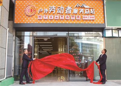 | 温州市户外劳动者服务总站揭牌。 通讯员徐知节 摄 |