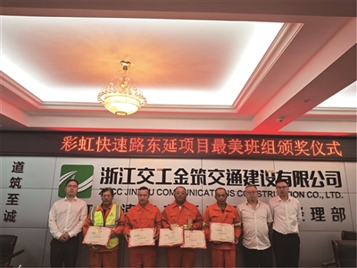 日前,浙江交工彩虹快速路东延项目举行“最美班组筑牢安全底线”颁奖典礼,表彰安全生产月度先进班组。接下来,项目部将以最美班组为模板,全面推广“网格化+标准化”班组安全管理新模式,让安全生产成为看得见的行动力。