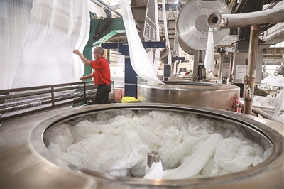 昨日,杭州市临安区天目山镇一家纺织印染企业,工人在生产各类布料。连日来,该镇工业园纺织印染企业开足马力加班加点赶订单,满足全国各地客户需求。