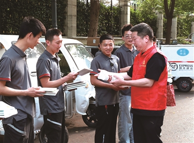 本报讯 记者寿慧桢、邹伟锋报道 昨日是“世界读书日”,浙江工人日报社全媒体采访中心党支部来到结对驿站杭州市拱墅区半道红社区工会驿站开展“我在工会驿站当‘站长’”实践活动。记者化身站长,将一本本劳模读物、经典书目以“快递”的方式送到了小哥们的手中。