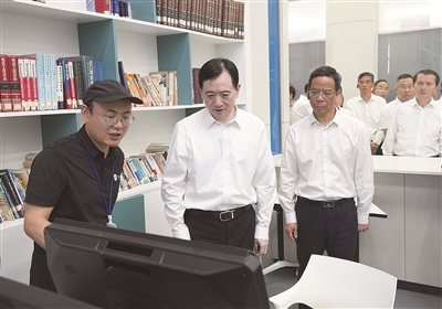 | 刘忻(左二)、吕志良(左三)在宁波海天塑机集团有限公司海天教育产业园现场观摩。 记者金钧胤 摄 |