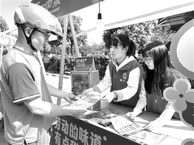 本报讯 记者寿慧桢 通讯员沈碧红报道 近日,湖州吴兴区环渚街道永辉商圈涌动着别样温情,一场由街道总工会主办的“劳动能量市集·服务直通车进商圈”活动在此展开。现场吸引了百余名快递员、外卖骑手、网约车司机等新就业形态劳动者参与。