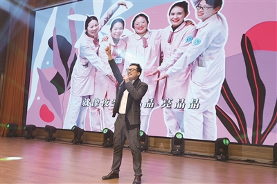 | 在医院春晚上,郑迪锋自编自演反映科室工作的歌曲。 |