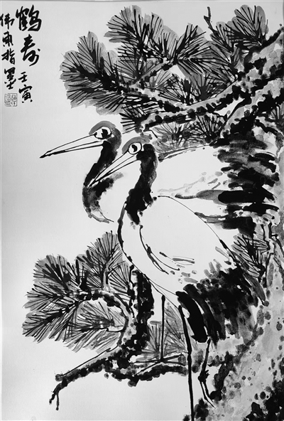 当年的习作除了花草鱼虫及山水松石的写生,还常剪取报刊上钟爱的画作临摹。赵伟东至今记忆犹新的,是祝贺祖母古稀大寿时他临摹了一幅著名画家吴作人的奔牛图,老人家接过图是左看右看,爱不释手,满脸是掩饰不住的笑容。这幅画在贺寿日当天被挂在显眼的客人们能瞧见的堂屋里,以后就一直挂在祖母自己的卧室内。