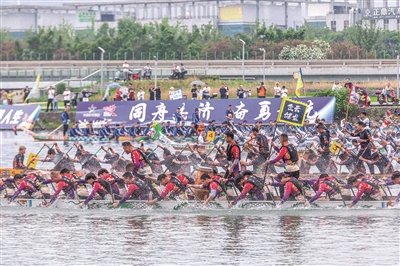 5月17日,温州龙舟运动中心,龙舟队伍在水中激烈角逐。当日,2025中国·温州中华传统龙舟展演活动暨“端午全国龙舟大联动”温州传统龙舟大赛在温州龙舟运动中心举行。来自杭州、宁波、温州等各县(市、区)的20余支龙舟队参加了巡游展示。