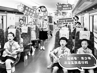 今年5月是全国第五个“民法典宣传月”。近日,在杭州客运段值乘的S2207次列车上,来自宁波余姚多所学校的小朋友们走进车厢,通过案例演讲、知识问答等形式,进行民法典等相关法律法规的普法宣传。