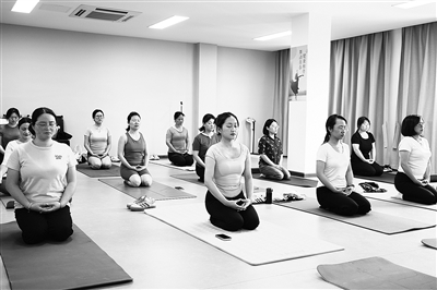 | 职工们正参与午间瑜伽公益培训课程。 |