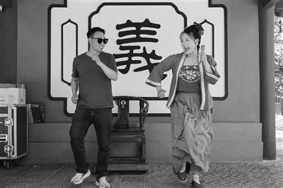 第一场演出结束后,她的嗓子已有些沙哑,一下台就端起保温杯喝了大半杯水。“这个角色就是要让自己一直保持很兴奋、很‘嗨’的状态,语速要快,声音要清脆洪亮。演‘西域姑娘’就不一样了,要保持神秘感,就要放慢语速,轻声细语。”说着,她一秒切换了神态语气,惟妙惟肖地演起了另一个角色,“嗨,这位路过的朋友,你对西域文化感兴趣吗?”带着波斯口音的普通话,与爽朗泼辣的“孙二娘”形象判若两人。