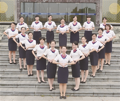来自中国移动通信集团浙江有限公司嵊州分公司的营业员们双手比心,留下最美合影。