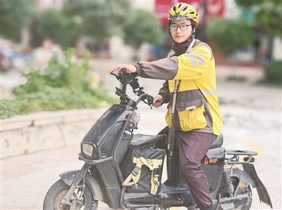 近日,美团外卖小哥王涛送餐忙。