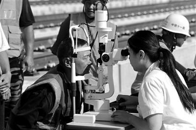 昨日,在第30个全国“爱眼日”来临之际,德清县中医院在杭德市域铁路项目工地开展义诊活动,为铁路工人筛查眼病,并普及与眼睛相关的保健知识。
