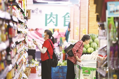 国家统计局昨日发布数据显示,5月份,全国居民消费价格指数(CPI)同比下降0.1%,降幅与上月相同;扣除食品和能源价格的核心CPI同比上涨0.6%,涨幅比上月扩大0.1个百分点。图为湖州居民在德清县乾元镇一家超市挑选商品。
