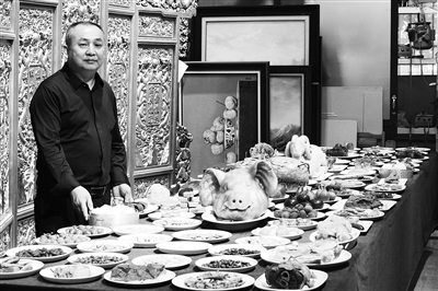 努力和执着带来了丰硕的成果,之前,夫妻俩精心雕刻的168道黄蜡石作品《中华美食·满汉全席》获得“大世界吉尼斯之最”。之后,他们继续创作,到现在,已经完成了320多道“美食”。