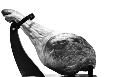 张述章是浙江省工艺美术大师,平时就爱好雕琢美石。近日,他用一块100多斤的黄蜡石雕刻的“金华火腿”完工了。笔者看到这只石头做的火腿长度在60厘米左右,被放在火腿架上,栩栩如生。