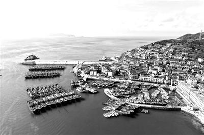近日,在舟山市嵊泗县嵊山渔港内,各类船只整齐停泊排列。碧波、蓝天、白云相互映衬,构成一幅夏日渔港风光画卷。